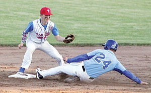 Jared Winslow steals second bottom of three with two out vs. Missoula Pioneers during the Wood Bat Tournament May 8.