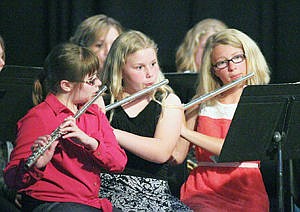 Playing in the fifth and sixth grade band were members Abigail Osborne, left, Kiralyn Newton and Beanka Scott during Troy High School's 2015 spring band concert. The group played "When the Saints Go Marching In," "Hard Rock Blues" and "Sakura, Sakura."