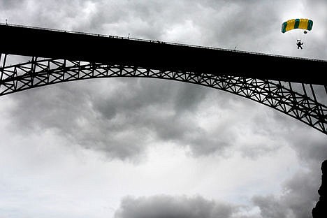 Also this month, Carla Jean Segil, 26, was left dangling 500 feet above the Snake River after a gust of wind blew her parachute into the bridge. She hung in the air for 40 minutes until a Twin Falls rescue crew pulled her up through a manhole.