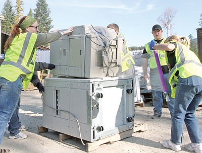 Volunteers prepare a pallet for shipment to ECS Refining in Stockton, Calif. recyclers of E-Waste Saturday Oct. 17. The event was sponsored by Lincoln County, Recycle Eureka, Collective Recyclers, Kootenai Disposal, All Systems Go and MT DEQ.