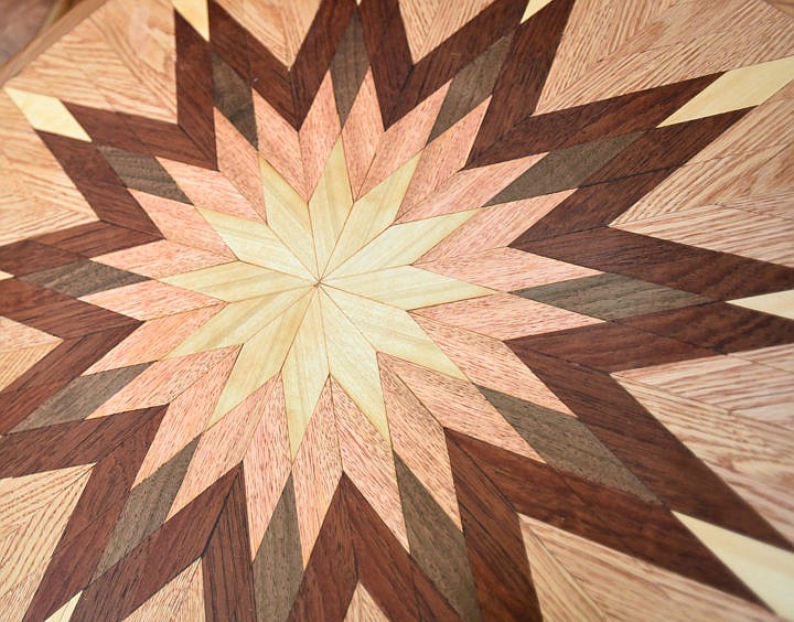 Detail of a hand-made piece of inlay woodwork by Roy Albertus. Pieces by Albertus will be for sale at the Hooper's Garden Center Annual Holiday Craft Bazaar today from 11-4 p.m. Brenda Ahearn/Daily Inter Lake