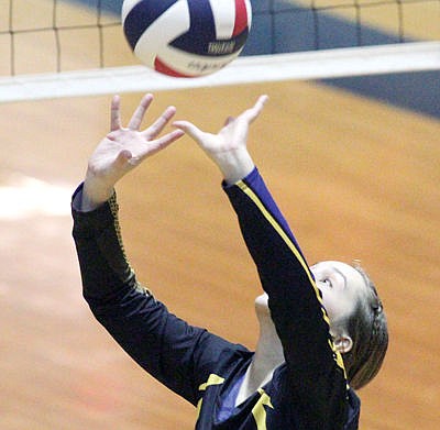 Senior Ashley Walker setting in game one vs. Bigfork during divisionals Friday. Bigfork in five: 25-18, 16-25, 22-25, 25-14, 6-15.