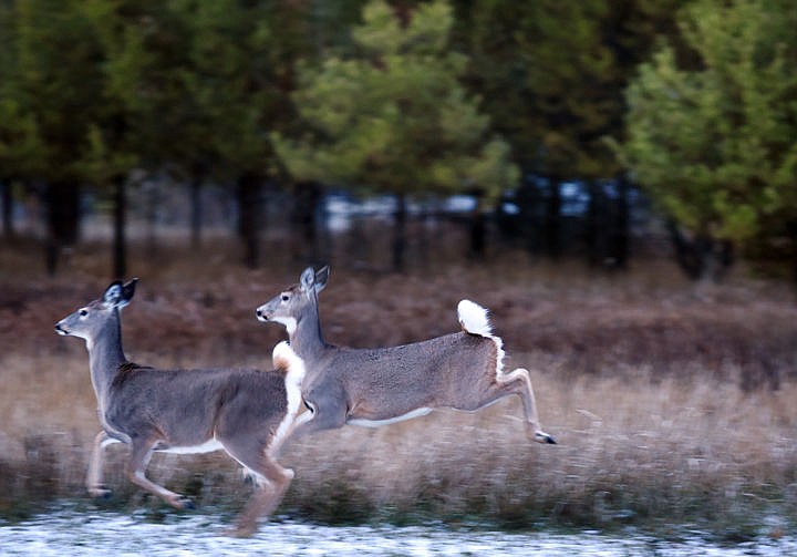 A herd of deer make their way through Whitefish on Wednesday evening, November 11. (Brenda Ahearn/Daily Inter Lake)