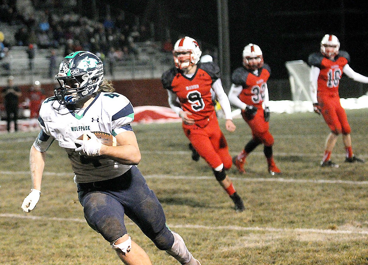 Troy sprinter Sean Opland cruises during the 100-meter finals at the Class B state track and field championship in Kalispell on Saturday. Opland finished second in the 100-meter dash and won the 200-meter dash. (Aaric Bryan/Daily Inter Lake)