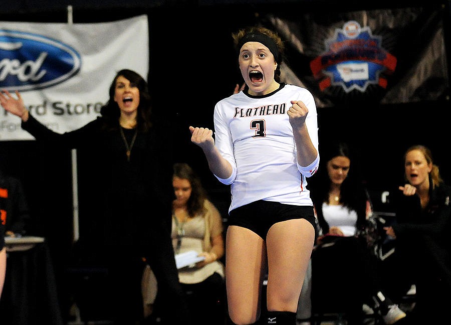 Troy's Scott Pate crashes into the pit during the long jump at the Class B state track and field championship in Kalispell on Friday. Pate finished in second with a jump of 20 feet, 11.5 inches. (Aaric Bryan/Daily Inter Lake)