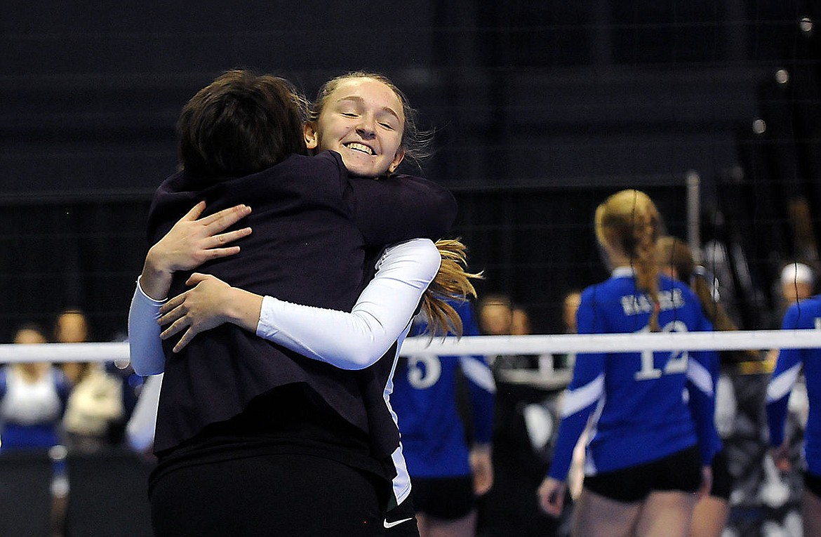 Troy's Scott Pate crashes into the pit during the long jump at the Class B state track and field championship in Kalispell on Friday. Pate finished in second with a jump of 20 feet, 11.5 inches. (Aaric Bryan/Daily Inter Lake)