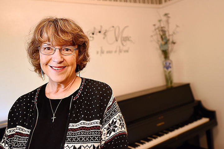 Music teacher Judy Doxtater in her home music room on Friday, Nov. 20, in Evergreen.