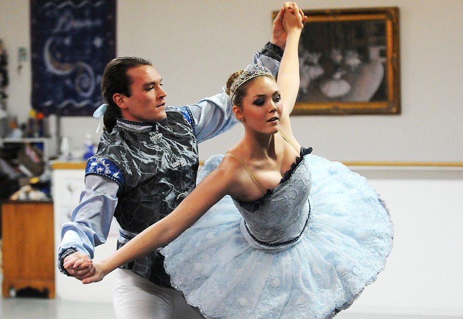 Hope Maxwell and Malachi Bennetts practice their part in the "Nutcracker," during rehearsal on Saturday. (Aaric Bryan/Daily Inter Lake)