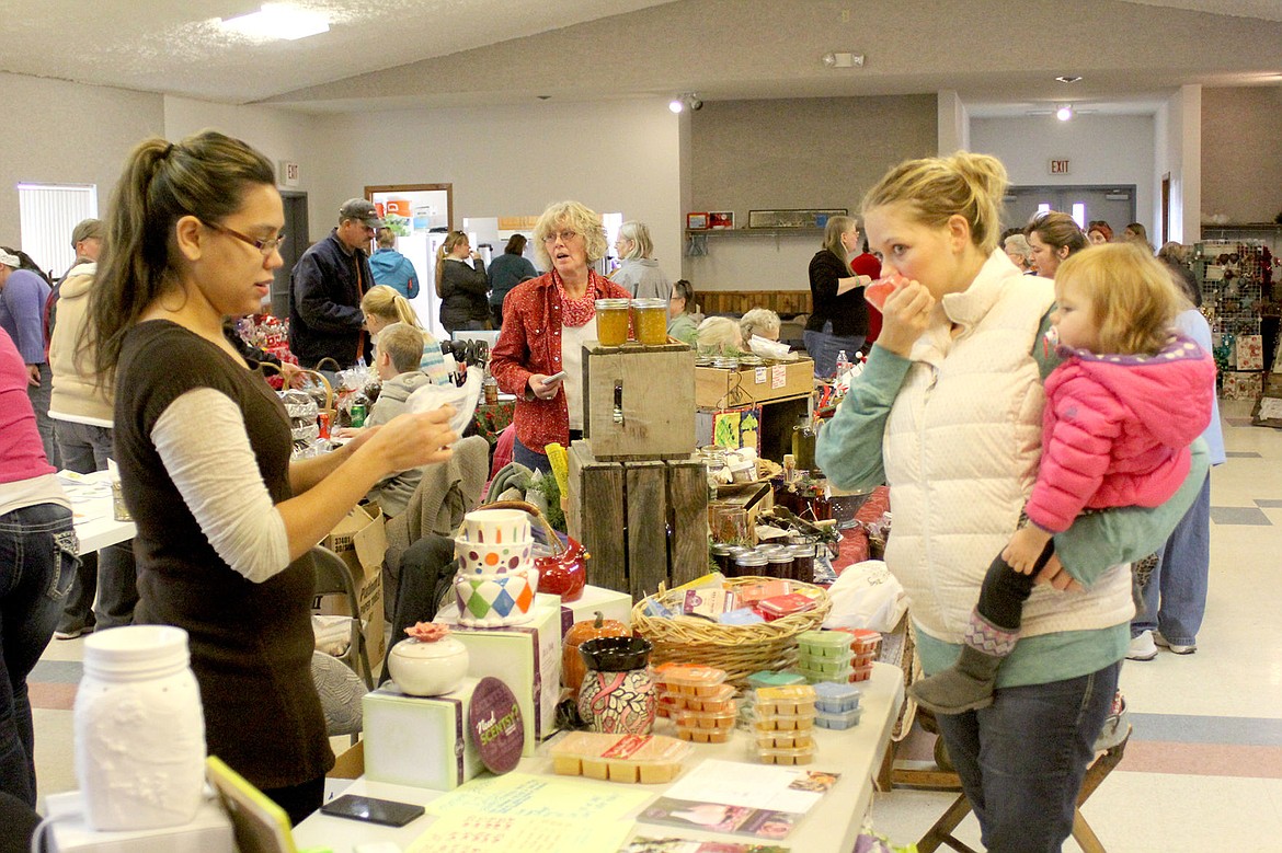 Crystal Graham and Taylor Salmi look at the scented soaps being sold at the bazaar in the Lonepine Community Hall.