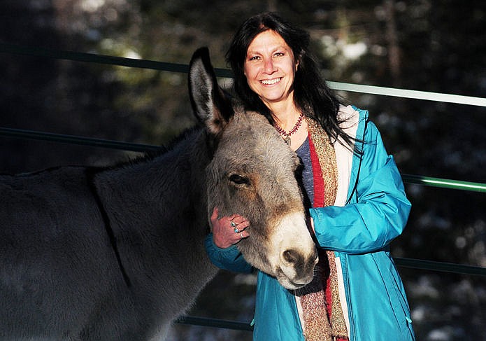 Alison Godfrey feeds her donkey Maggie at the home she designed in the west valley area.