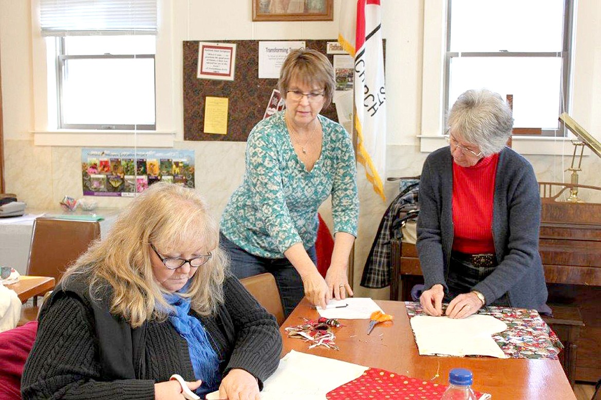 After their regular meeting on Friday, several members of the PWC stayed at the Methodist Church to sew stockings. They used a variety of festive, holiday cloth to make them as full of holiday cheer as possible.
