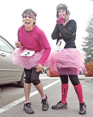 Saturday's Paint It Pink Fun Run/Walk was full of good times, good friends and all for a great cause. Anne Nicks, left, and Riki Thompson.