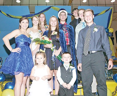 The entire court, from left to right, was Bailie Rosling, India Croucher, Krysten Mossberg, Ashley Walker, Dominic Voorhies, Cody Murray, Justin Christiansen and Zander Petersen. Lakyn Rewerts, left, and Zade Rewerts were named the crown bearers.