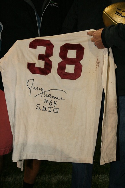 One of the best moments of the night came when Sandpoint principal Tom Albertson showed Jerry his No. 38 SHS jersey, which along with David Lyon’s No. 64, are the only two retired jerseys. Kramer was moved to tears, having no idea that anyone ever kept it, before signing it and giving it back to Albertson.