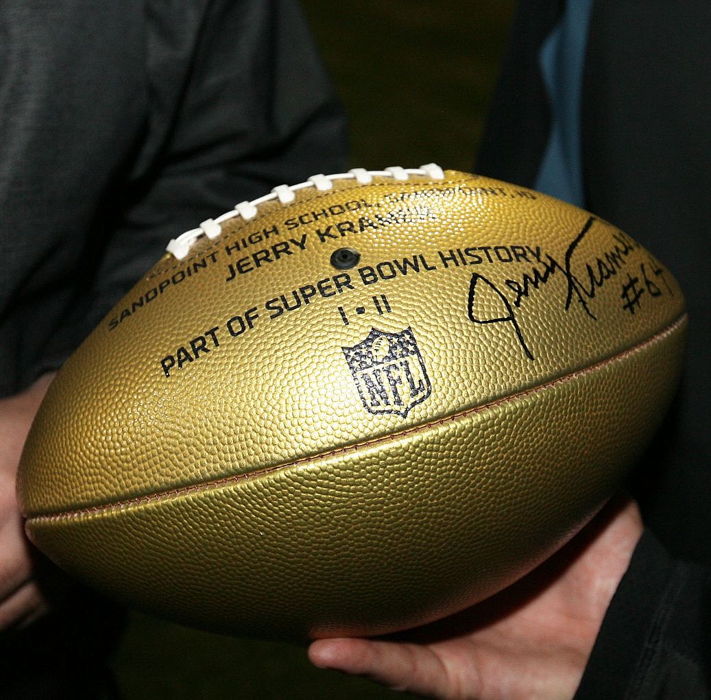 The NFL flew Kramer and several of his family members into town to present the gold NFL football to Sandpoint High School, part of the 50th Anniversary celebration of the Super Bowl, as the NFL is presenting a commemorative football to the high school of every former coach and player to take ever part in arguably sports’ biggest spectacle.
