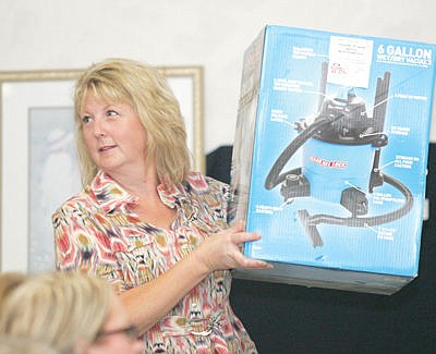 Bow-Wow Bash 2015 with Audray McCollum displaying a shop vacuum during the live auction Saturday.