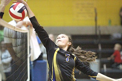 Emily Mossburg tips it over vs. Thompson Falls Sept. 29.