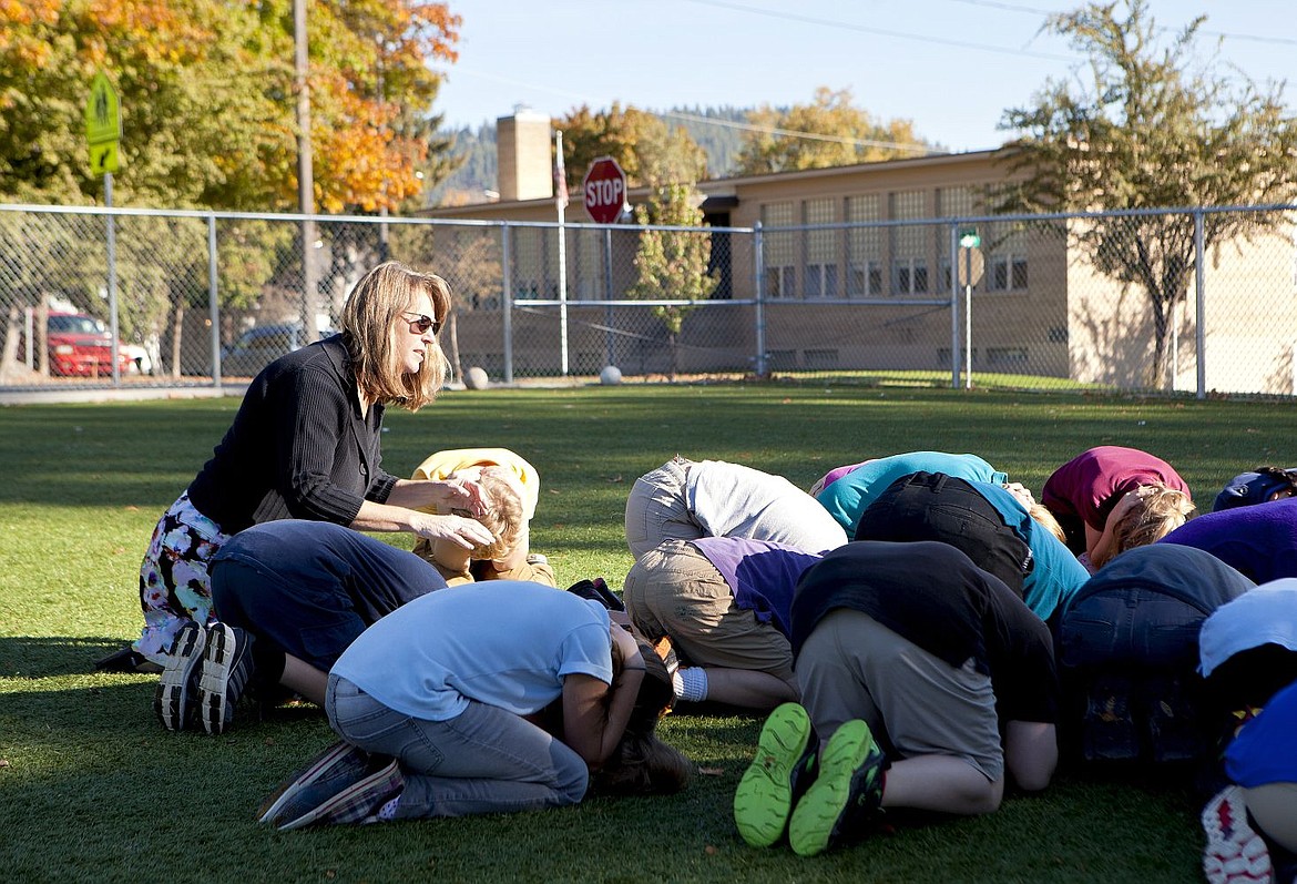 COEUR d'ALENE — Elaine Moreen's fourth-grade class was scheduled to be on recess during a statewide earthquake drill Thursday morning. So she kept it as authentic as possible.