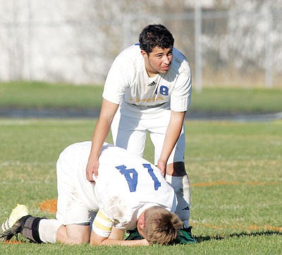 Senior midfielder Zander Petersen, below, expresses his grief after losing 6-5 to Valley Christian in a shoot-out Oct. 17. Giovanni Cano, top.
