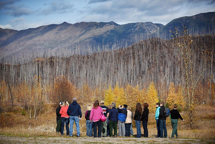 Glacier Rim was the first notable fire of the year, beginning on June 27 and consuming about 100 acres, but it was merely a precursor to the big fire season that followed. U.S. Forest Service members were the guides for this part of the tour, waiting as two school buses and a caravan of cars unloaded into a parking lot at the base of a burnt hillside.