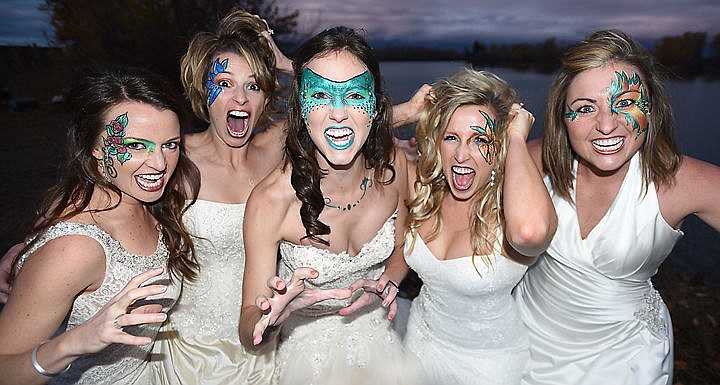 From left, Katie Pfennigs, Teryn Waldenberg, Lauren Stoll, Mandy Pokorny, and Nicole Buckallew, pose as "bridezillas." Their beautiful monster makeup was done by Kathleen Francis of Fancy Face Design.