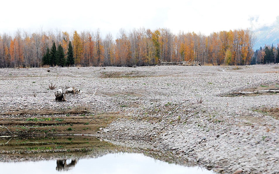 A small pool of water is all that is left of a side channel of the Flathead River. (Aaric Bryan/Daily Inter Lake)