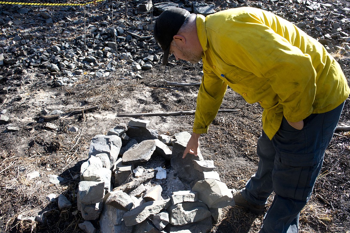 Devlin LaFrombois shows how unburned napkins mean the campers thought the fire was out.