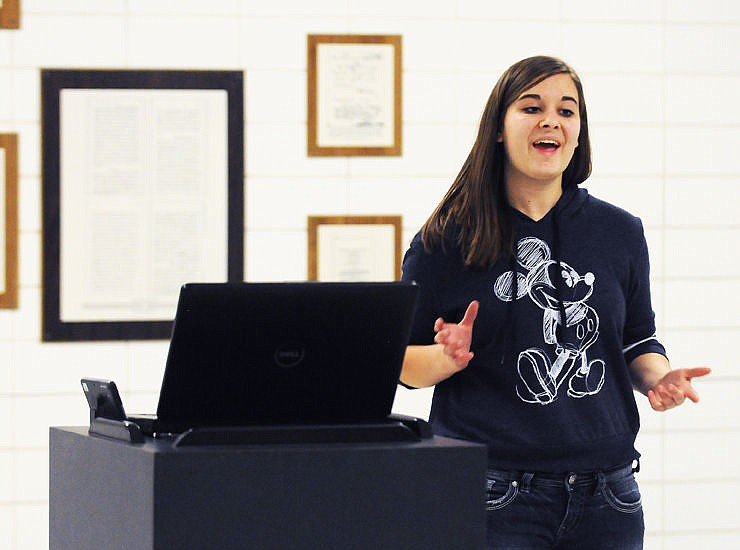 Flathead senior Mikayla Cardin practices giving an extemporaneous speech at the school on Friday. (Aaric Bryan/Daily Inter Lake)
