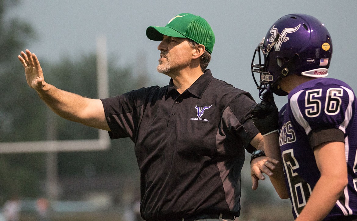 In both end zones of the field, a John Deere logo was painted in the grass with the number 51 below it. Behind the home team, a banner reading ‘You have one job and one job only…Brett Krantz’ was attached to the fence. Next to it was a helmet and uniform with the number 51. Coaches were wearing green hats with a yellow ‘V’ on them. A picture of Krantz with angel wings hung behind the concession stand.