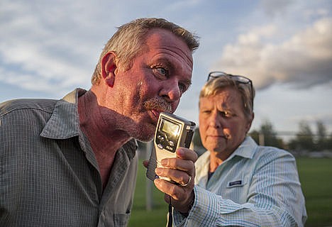 Throughout the drinking, the volunteers submitted to breath tests that gauged their blood alcohol levels. Press reporter Jeff Selle was one of the volunteers.