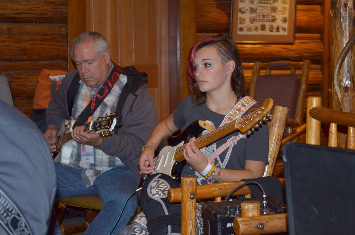 In the last three years, McAndrew has gone from a steady C student to making the honor roll at her Philadelphia private school. And now, her hard work has brought her to the Flathead Lake Lodge’s south lodge, where she spent the past week practicing with monumental jazz and blues instructor Dennis McCumber and a group of experienced guitarists on improvisational jamming, pulling out different scales in different keys on the spot.