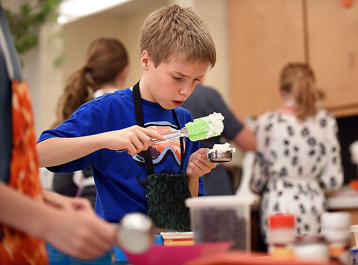 Bodo Brown measures out ingredients to make cookies for firefighters on Thursday, September 10, at Kalispell Middle School. (Brenda Ahearn/Daily Inter Lake)