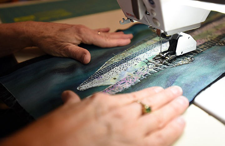 Sally Glutting of One Loose Thread working on quilts in her home studio on Wednesday, September 9, in Kalispell. (Brenda Ahearn/Daily Inter Lake)