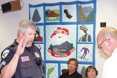 Terry Watson being sworn in as Chief of Police by Libby Mayor Doug Roll.