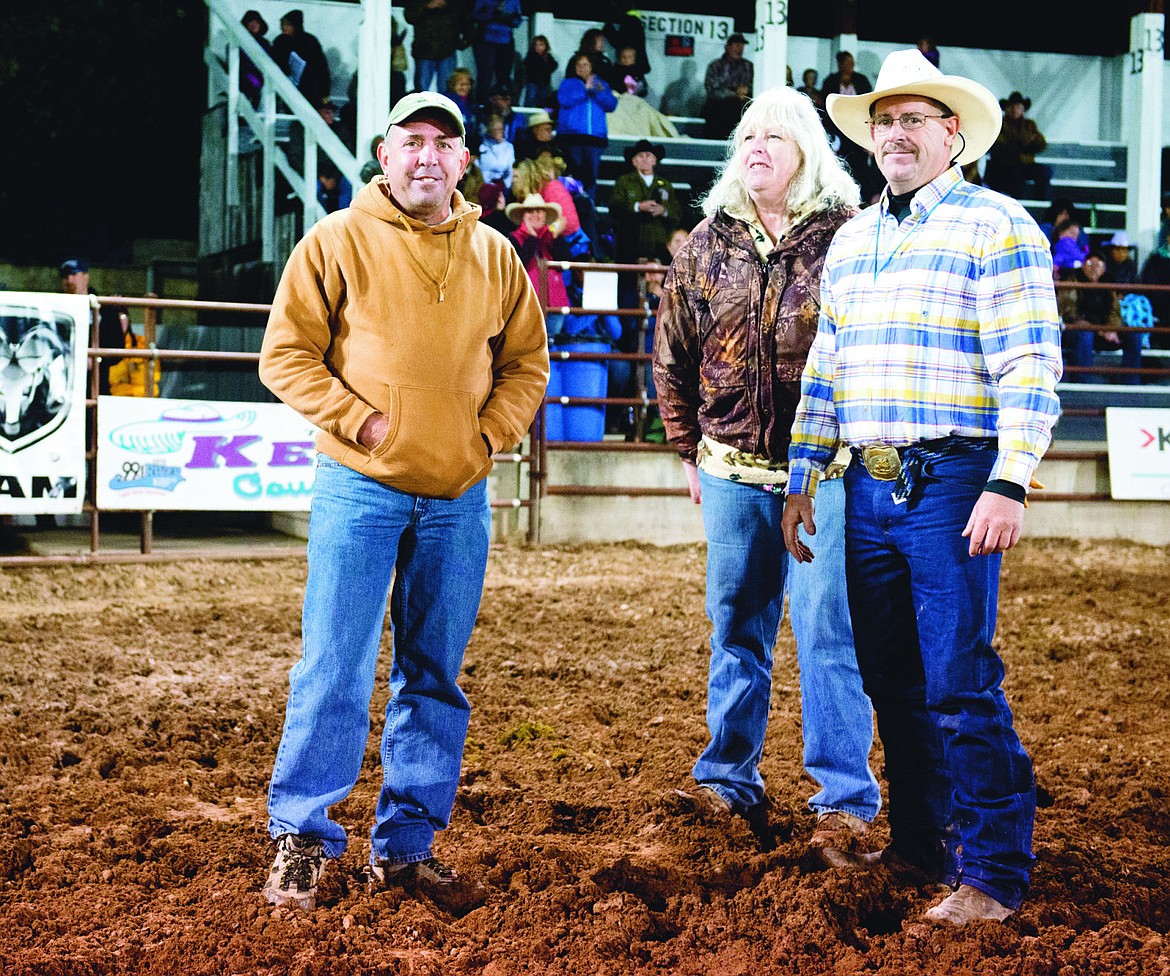 Randy Garrison, left, receives the Community Service Award, Saturday night.