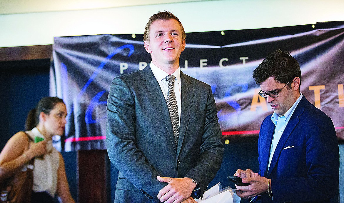 James O'Keefe, President of Project Veritas Action, waits to be introduced during a news conference at the National Press Club in Washington, Tuesday, Sept. 1, 2015. (AP Photo/Pablo Martinez Monsivais)