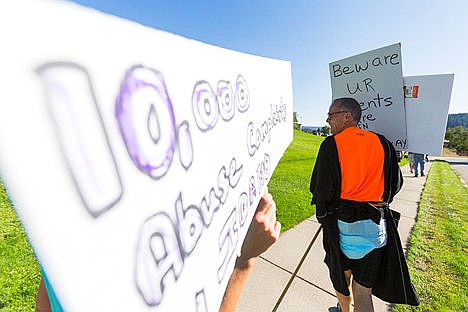 Some demonstrators stood farther up Lakewood Drive near the Area Agency on Aging of North Idaho, which investigates abuse allegations at assisted living facilities and determines whether police should be contacted.