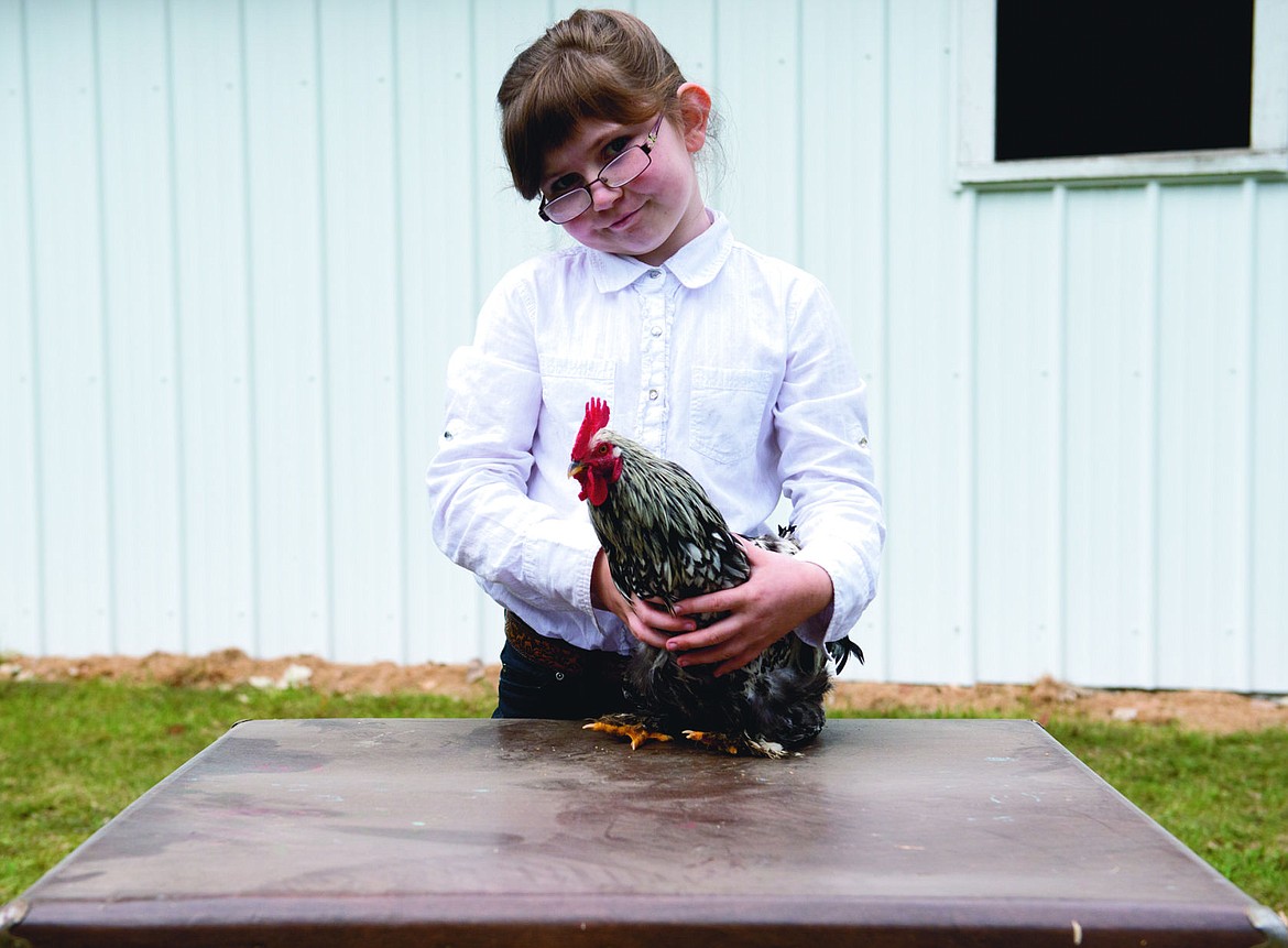 Jessica Land holds onto a rooster during the Small Animal Roundup, Saturday.