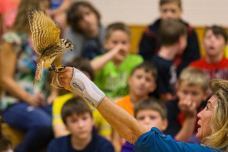 COEUR d'ALENE - During a school-wide assembly Friday, raptor biologist Janie Veltkamp told elementary students that as the fastest animals on Earth, falcons have to have focus.