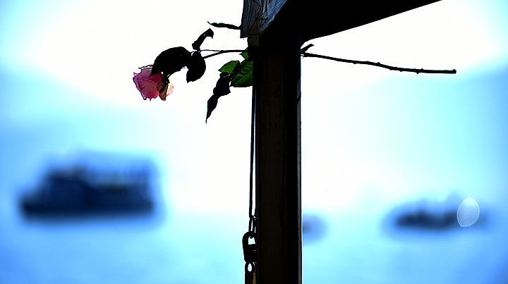 The lunar eclipse as seen from Big Mountain on Tuesday morning, April 15, at 1:17 a.m. (Brenda Ahearn/Daily Inter Lake)