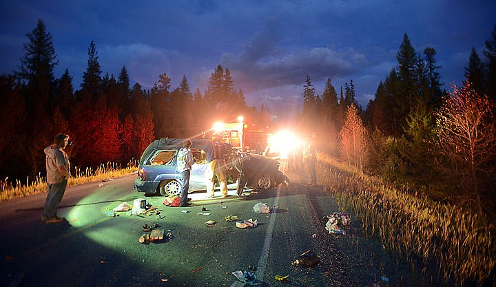 View of a rollover wreck on U.S. 93 north of Olney on Sunday night, September 13. (Brenda Ahearn/Daily Inter Lake)