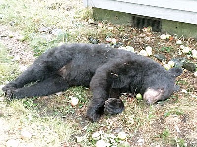 “They’re eating fruit non-stop,” she said. “The access to food is teaching bears that people mean a good food source. People need to block their fruit trees or pick the fruit. Bears will not leave until every scrap of food is gone from the area.”