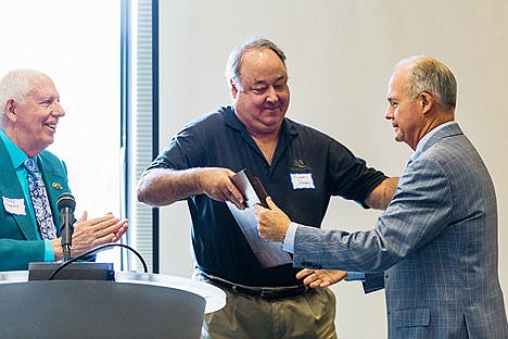 "My mom (Gladys) and dad (Manny) certainly set the bar high for their son over the years," said Schneidmiller. He and his parents were honored during the Post Falls Chamber of Commerce's membership meeting at Red Lion Templin's Hotel.
