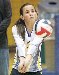 Junior Madisen Monigold third set vs. Anaconda Sept. 18.