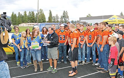 The Libby Loggers traveled to Priest River, Idaho, Friday evening and took part in KREM television’s Tom’s Tailgate Weather feature. The online audience voted the Libby-Priest River game as meteorologist Tom Sherry’s destination for the week by an overwhelming 62 percent margin.