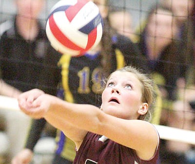 Junior Allie Brown sends it over the net in the first vs. Libby Sept. 24. Lady Loggers in three: 18-25, 21-25, 15-25.