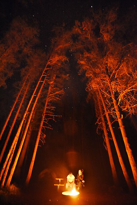 Rommie Minhaz and Oogi Tumur of Calgary enjoy the warmth of a campfire in West Glacier on Sunday, September 27. (Brenda Ahearn/Daily Inter Lake)