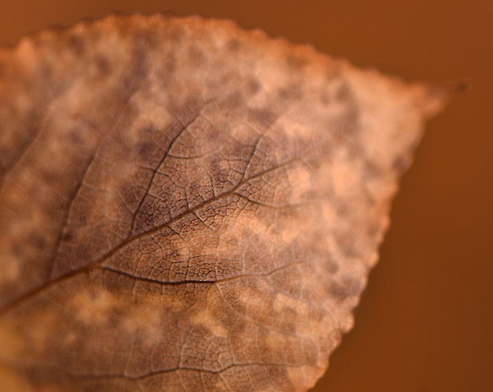 Close detail of a dried leaf along Witty Lane in Columbia Falls on Wednesday, September 30. (Brenda Ahearn/Daily Inter Lake)