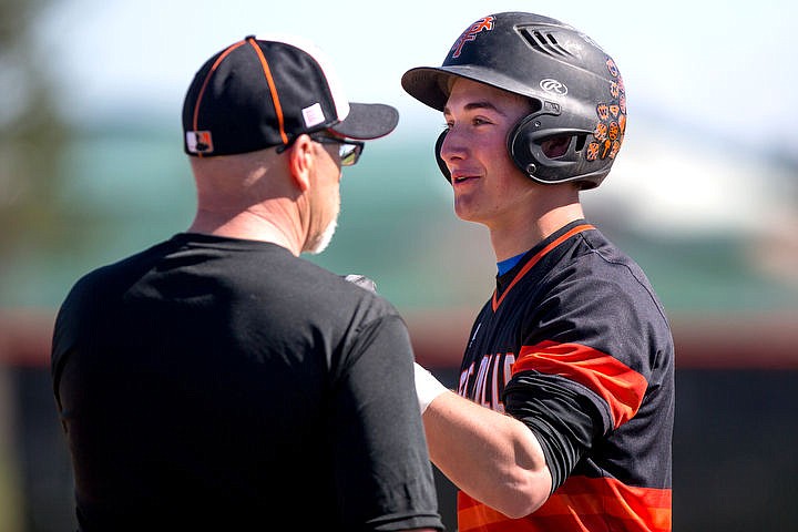 <p>Post Falls junior Sam Schulze collides with Timberlake first baseman Dustin Smith (16) as Schulze attempts to make it to base on an infield ground ball on Friday at Post Falls High School. Smith dropped the ball during the play.</p>