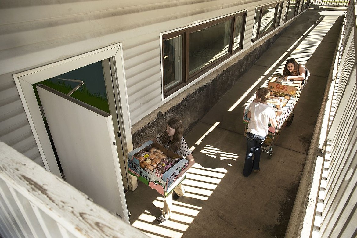 COEUR d'ALENE — Four 11-year-old girls, all fifth-graders at Borah Elementary School, spent their lunch hour Wednesday helping unload the first food delivery to the Borah Elementary Food Pantry at Coeur d'Alene Assembly Church.